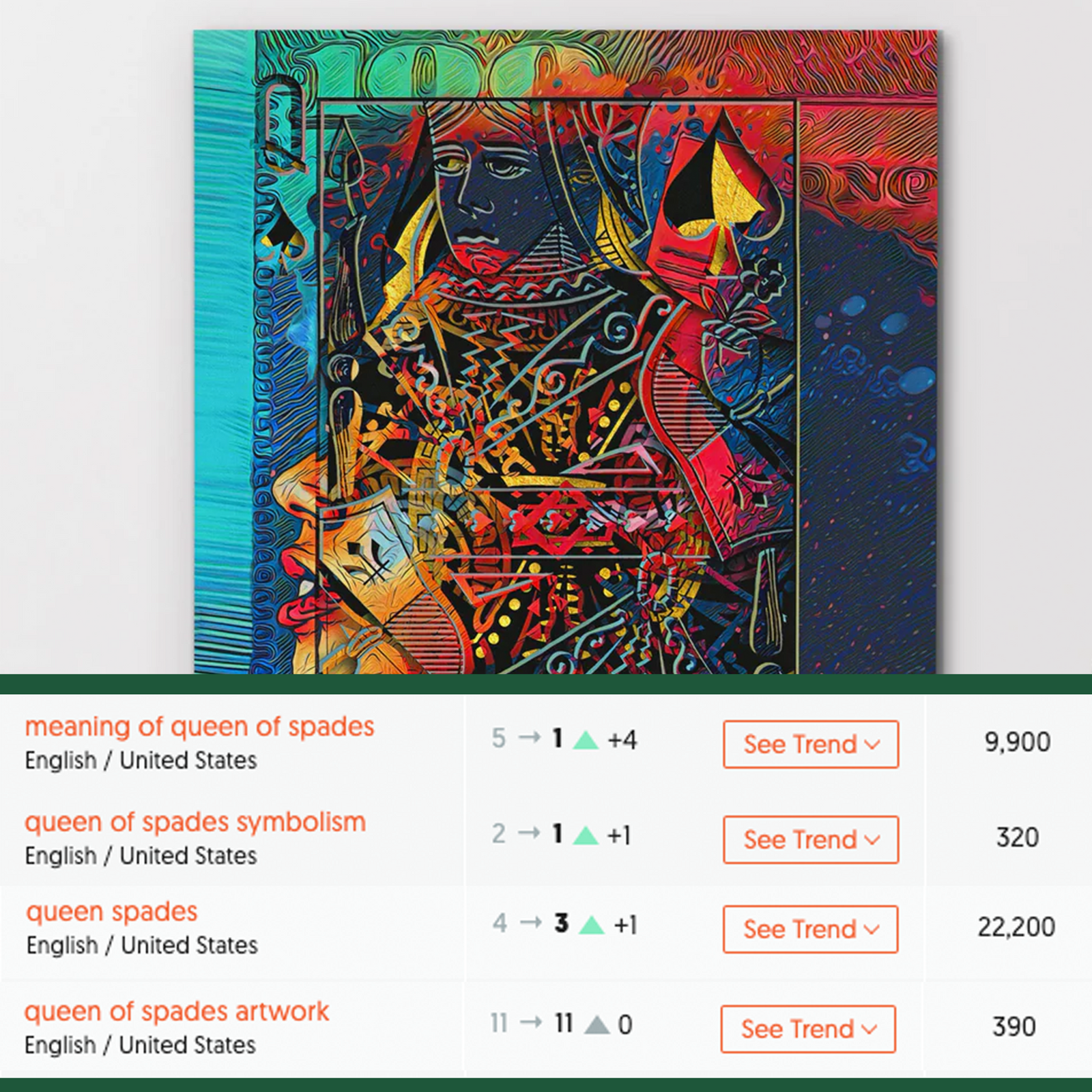 With terms like 'gothic art' and 'macabre', this blog alone attracts several hundred organic visitors monthly, also boosting the rankings of several related products.