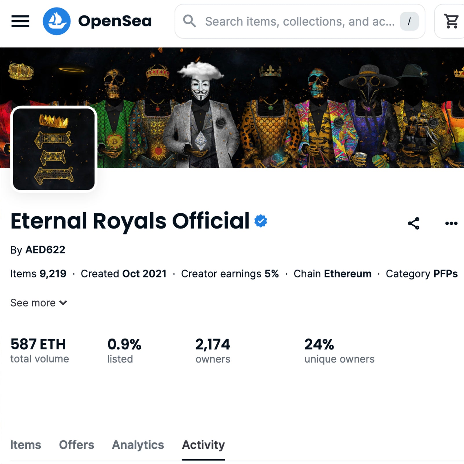 In 2021, I collaborated with a team of skilled professionals to launch Eternal Royals, an NFT collection that quickly gained traction in the digital art space. This project achieved over $2 million in primary sales, with additional revenue generated through ongoing royalties from secondary market trades.